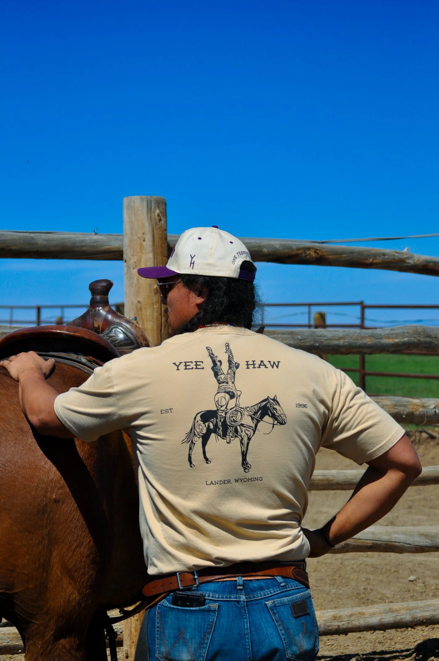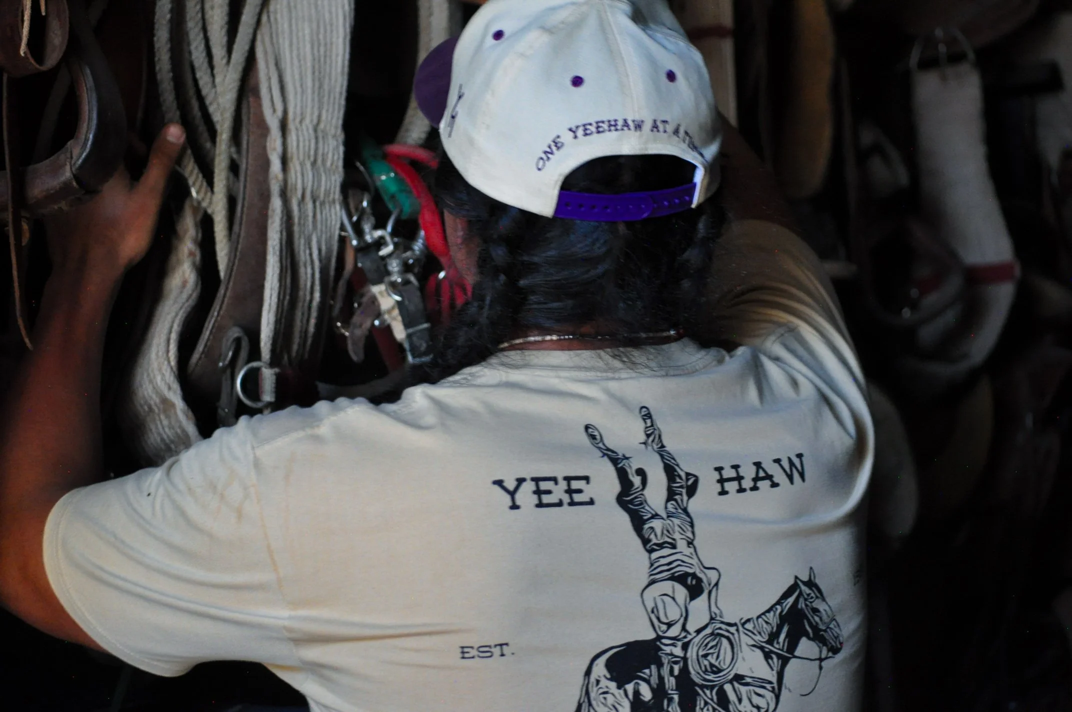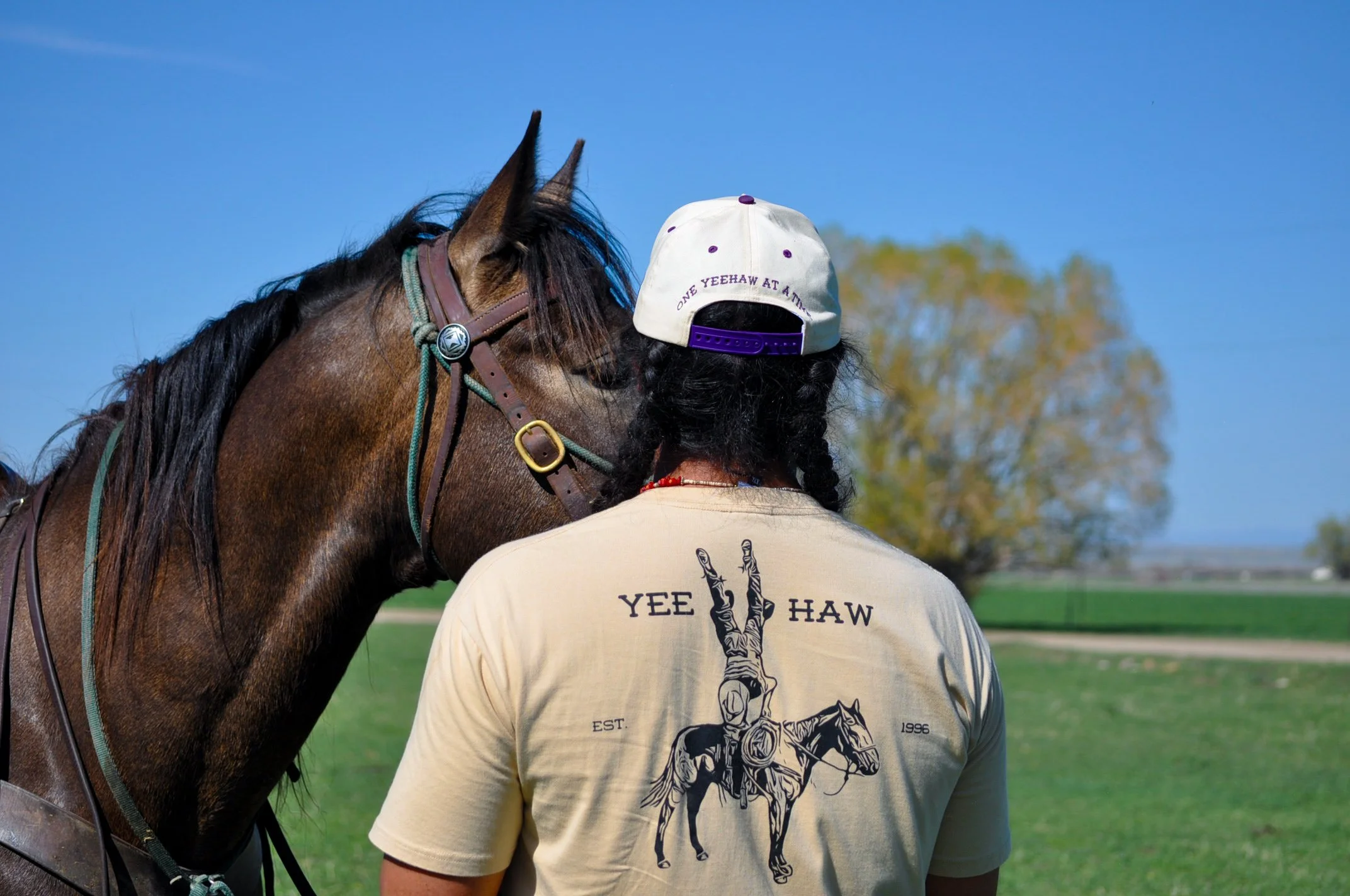 Founded by Jess Oldham, an enrolled member of the Navajo Nation, One Yeehaw draws inspiration from a life spent immersed in both Indigenous culture and the wide-open landscapes of Wyoming and the American West. Jess grew up on the Navajo Nation before moving to Wyoming, where his family operates the Wind River Wild Horse Sanctuary and a working cattle ranch. These experiences shaped his passion for genuine storytelling, western grit, and uplifting his rural and Indigenous communities.
