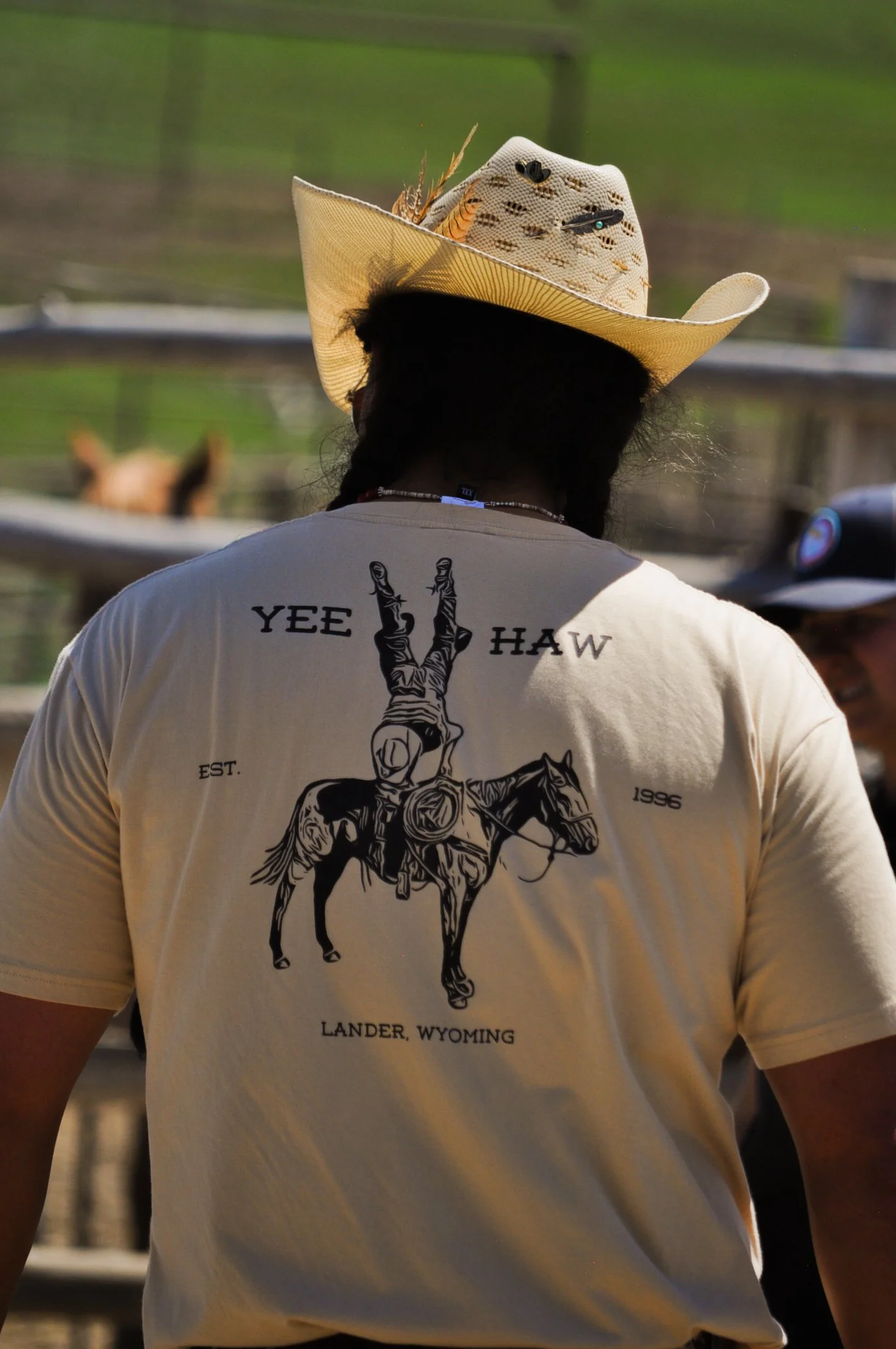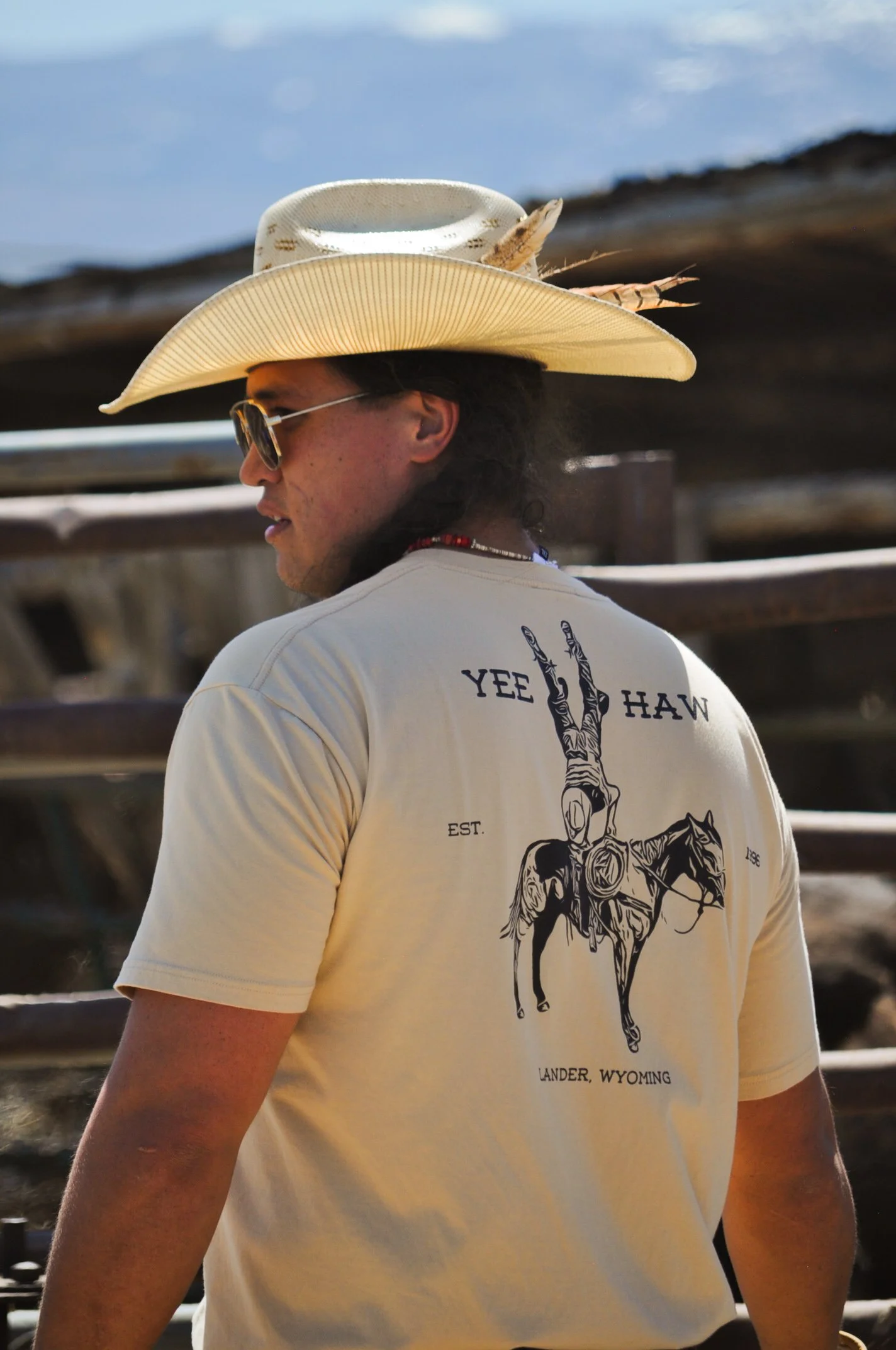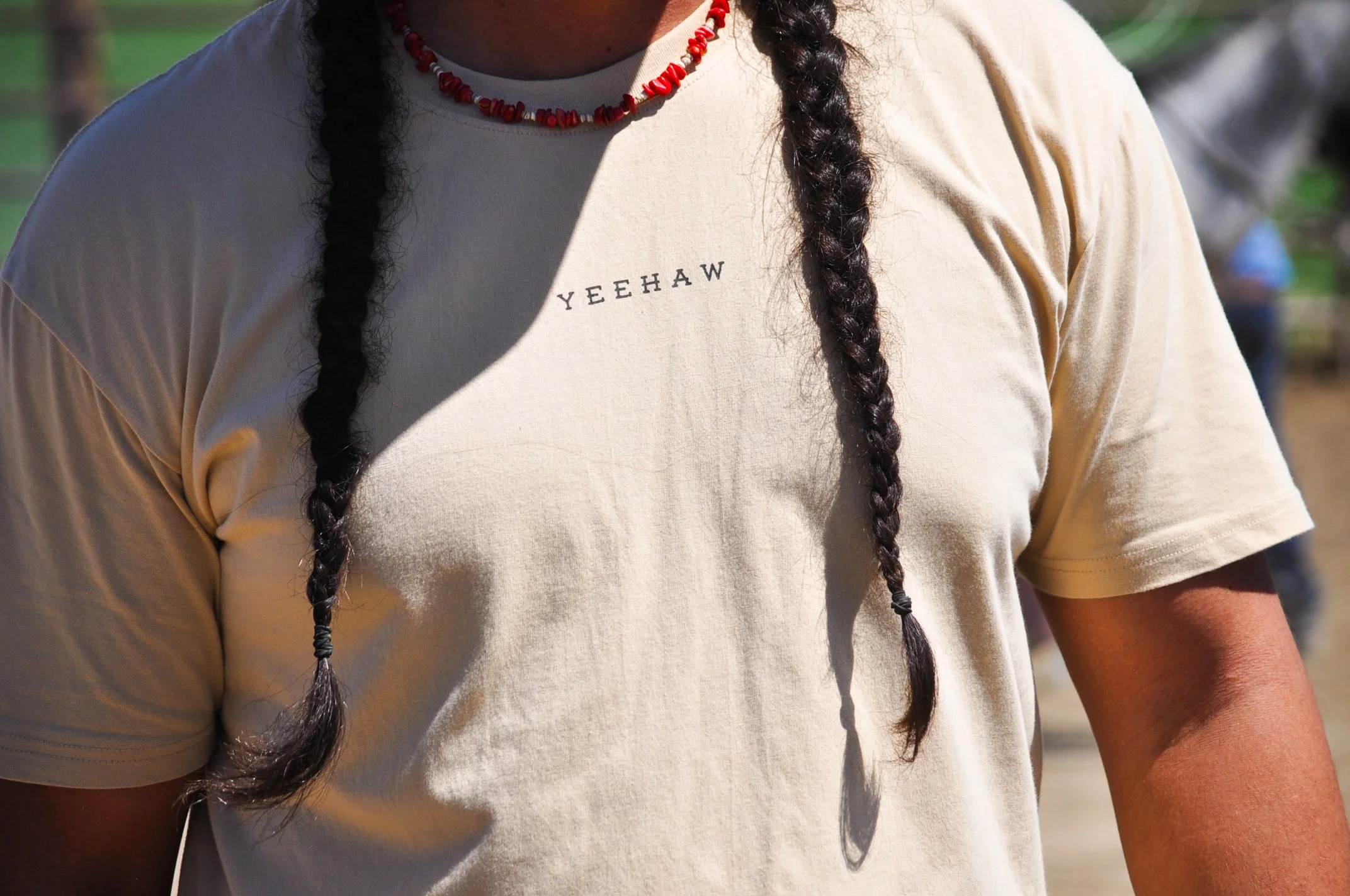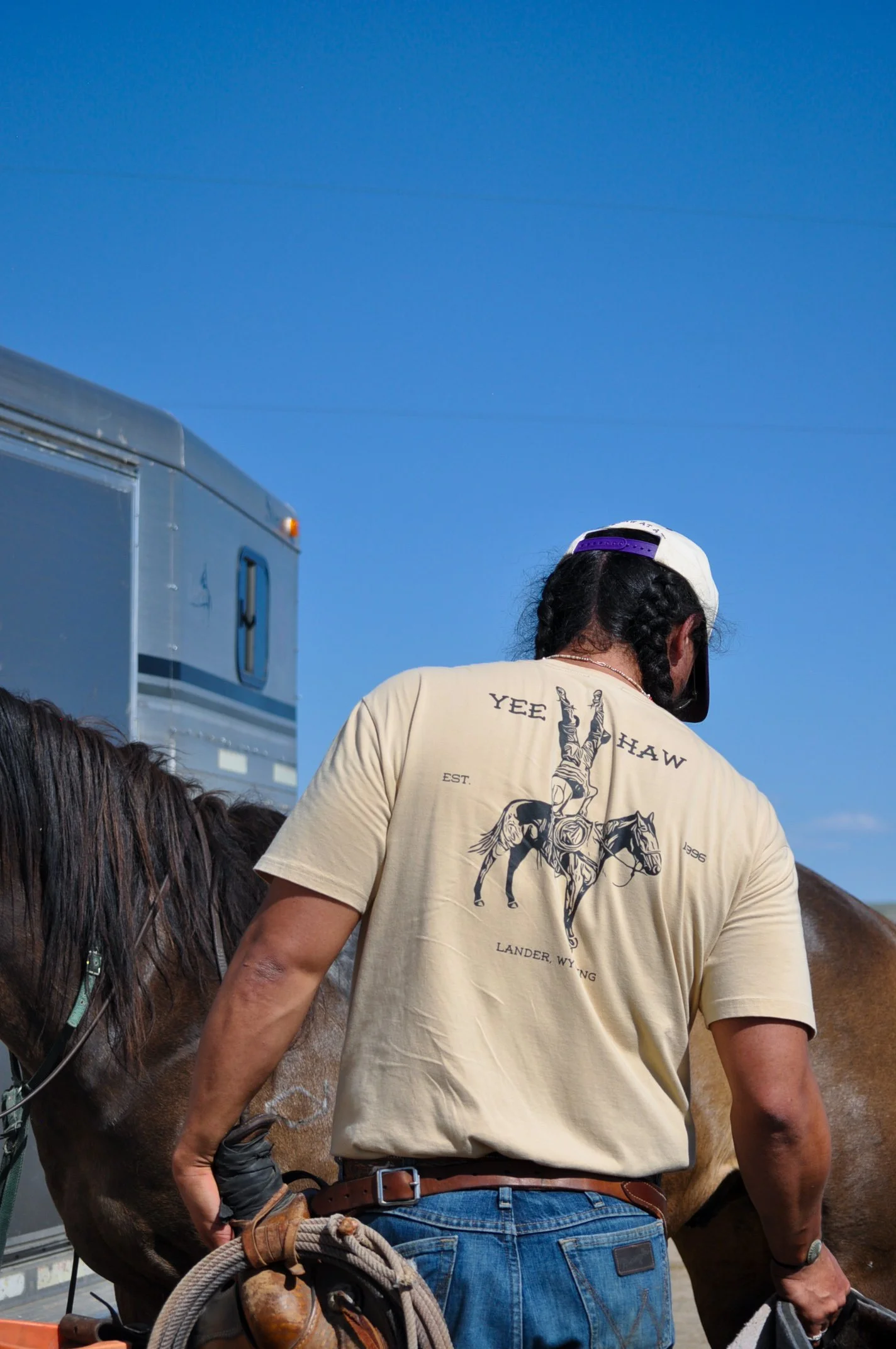 Founded by Jess Oldham, an enrolled member of the Navajo Nation, One Yeehaw draws inspiration from a life spent immersed in both Indigenous culture and the wide-open landscapes of Wyoming and the American West. Jess grew up on the Navajo Nation before moving to Wyoming, where his family operates the Wind River Wild Horse Sanctuary and a working cattle ranch. These experiences shaped his passion for genuine storytelling, western grit, and uplifting his rural and Indigenous communities.